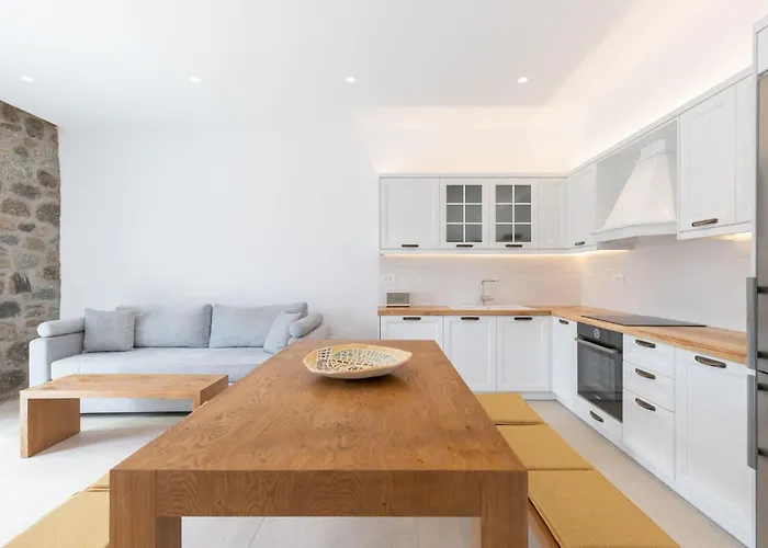 Ikade Mykonos Apartment Mykonos Town includes a terrace and is located 3.2 km from the Archaeological Site of Delos. Guests are lured in by a treatment room at the apartment, which also provides body wraps, body scrub, and pedicure to further enhance their relaxation.